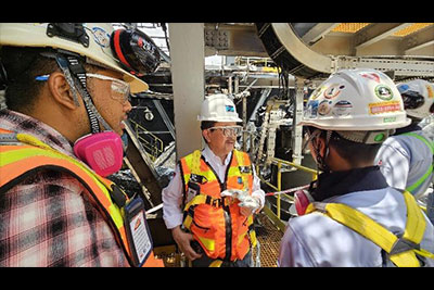 Presiden Direktur PT Freeport Indonesia (PTFI) Tony Wenas melakukan inspeksi ke lokasi kebakaran Common Gas Cleaning Plant, Smelter PTFI, di Kawasan Ekonomi Khusus Gresik, Jumat, (18/10).
