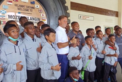 Dengan raut tersenyum penuh rasa bangga, Beatriks Rumaseb memberi kecupan di kening putranya, Perez Rumaseb, yang akan berangkat ke Pulau Jawa sebagai bagian dari tim Papua Football Academy (PFA) pada Sabtu (11/2/2023) pagi waktu lokal. Perez pun berlinang air mata haru setelah mendapat kecupan di depan pintu masuk Bandara Mozes Kalingin, Timika, Papua tersebut. Rautnya tersipu malu karena di hadapan dia hadir beberapa media nasional yang meliput, termasuk Kompas.com.