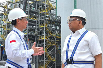 Wakil Menteri Ketenagakerjaan Afriansyah Noor meninjau proses pembangunan Smelter PT Freeport Indonesia (PTFI) di Kawasan Ekonomi Khusus, Gresik, Jawa Timur, Senin (18/3).