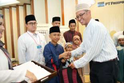 PT Freeport Indonesia (PTFI) mengadakan acara berbuka puasa dan berbagi dengan 1000 anak yatim dan dhuafa di aula Masjid Agung At-Tin Taman Mini Indonesia Indah Jakarta, Kamis (28/3).