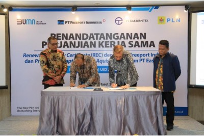PT Freeport Indonesia bersama PT Perusahaan Listrik Negara (Persero) menandatangani perjanjian Renewable Energy Certificates (REC) di Surabaya, Jumat (8/3).