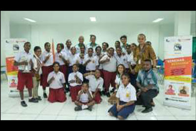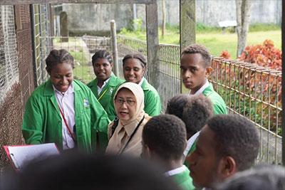 Laura Beanal (16) berdiri di halaman Sekolah Asrama Taruna Papua (SATP). Pagi itu terasa istimewa bagi Laura. Bersama temannya, Dewi Erakipia (11), mereka menyambut tamu istimewa yang berkunjung ke SATP, awal Februari lalu.