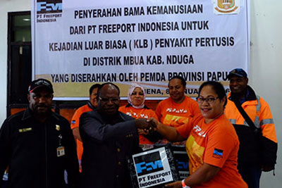 Pada Jumat, 8 Januari 2016 yang lalu, PT Freeport Indonesia menyerahkan bantuan kemanusiaan musibah wabah penyakit pertussis yang melanda komunitas Nduga di Distrik Mbua, Kabupaten Nduga, Papua.