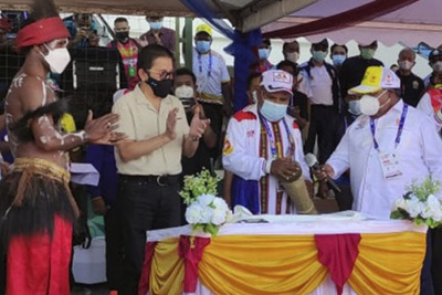 Bunyi pukulan alat musik tradisional tifa menandai peresmian GOR Mimika Sport Complex (MSC) oleh Gubernur Papua Lukas Enembe, Selasa. Dalam acara seremonial itu, Lukas yang didampingi oleh Bupati Mimika Eltinus Omaleng dan Presiden Direktur Freeport Indonesia Tony Wenas juga menandatangani prasasti peresmian GOR MSC.