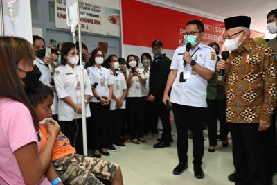 Wakil Presiden (Wapres) Republik Indonesia KH Ma'ruf Amin meninjau pelaksanaan bakti sosial (baksos) di RSUD Mimika, Kabupaten Mimika, Provinsi Papua Tengah, Rabu (12/07/2023). Kegiatan baksos diselenggarakan atas kolaborasi dari Persatuan Purnawirawan TNI AD (PPAD), Pemerintah Provinsi Papua Tengah, Kabupaten Mimika, PT Freeport Indonesia (PTFI), dan Perhimpunan Dokter Spesialis Mata Indonesia (Perdami).