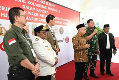 Wakil Presiden (Wapres) Ma'ruf Amin meninjau pelaksanaan bakti sosial (baksos) operasi katarak dan bibir sumbing di Rumah Sakit Umum Daerah (RSUD) Timika Wonosari Jaya di Mimika, Papua Tengah, Rabu, 12 Juli 2023.