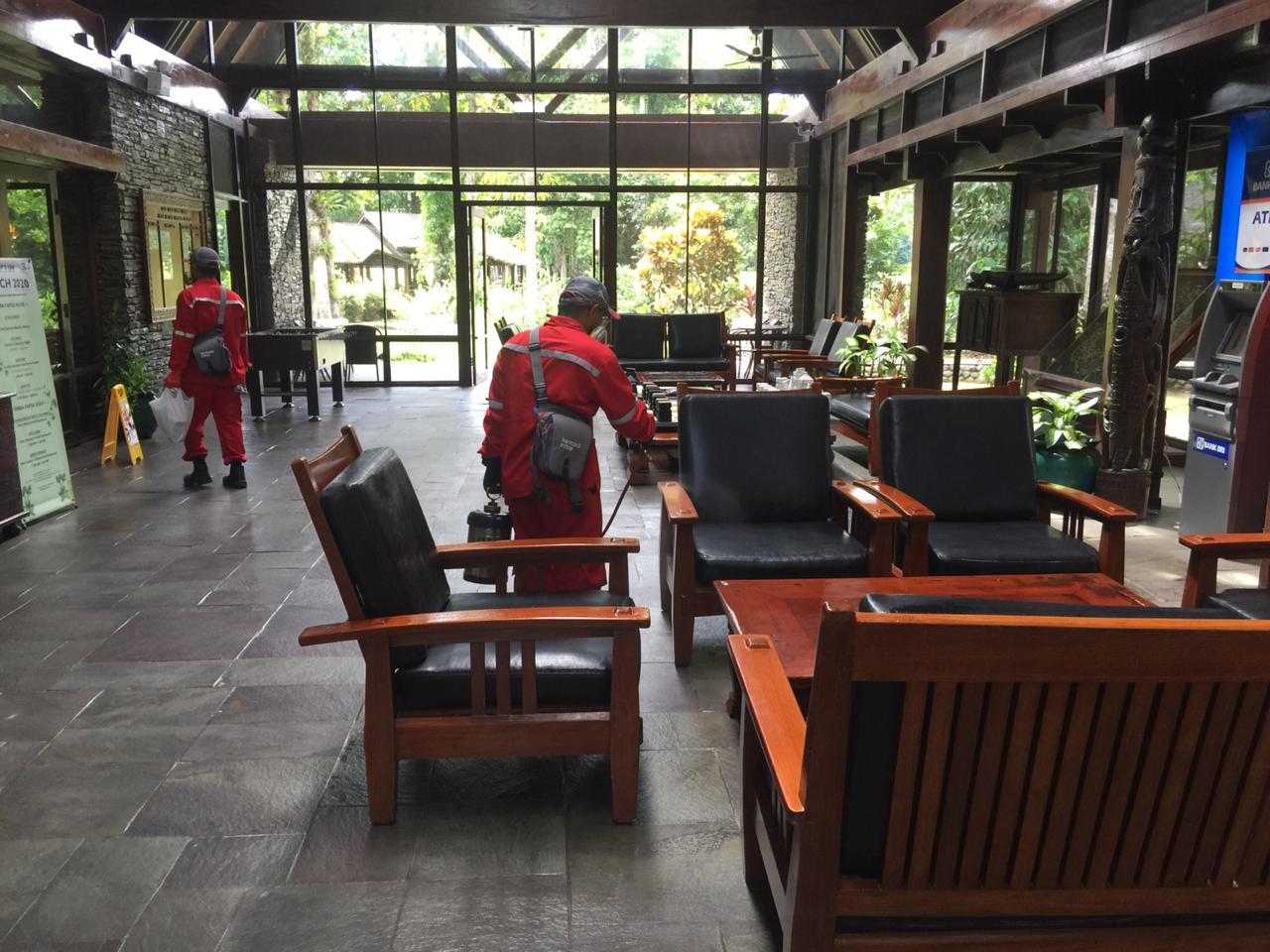 Penyemprotan disinfektan fasilitas umum karyawan