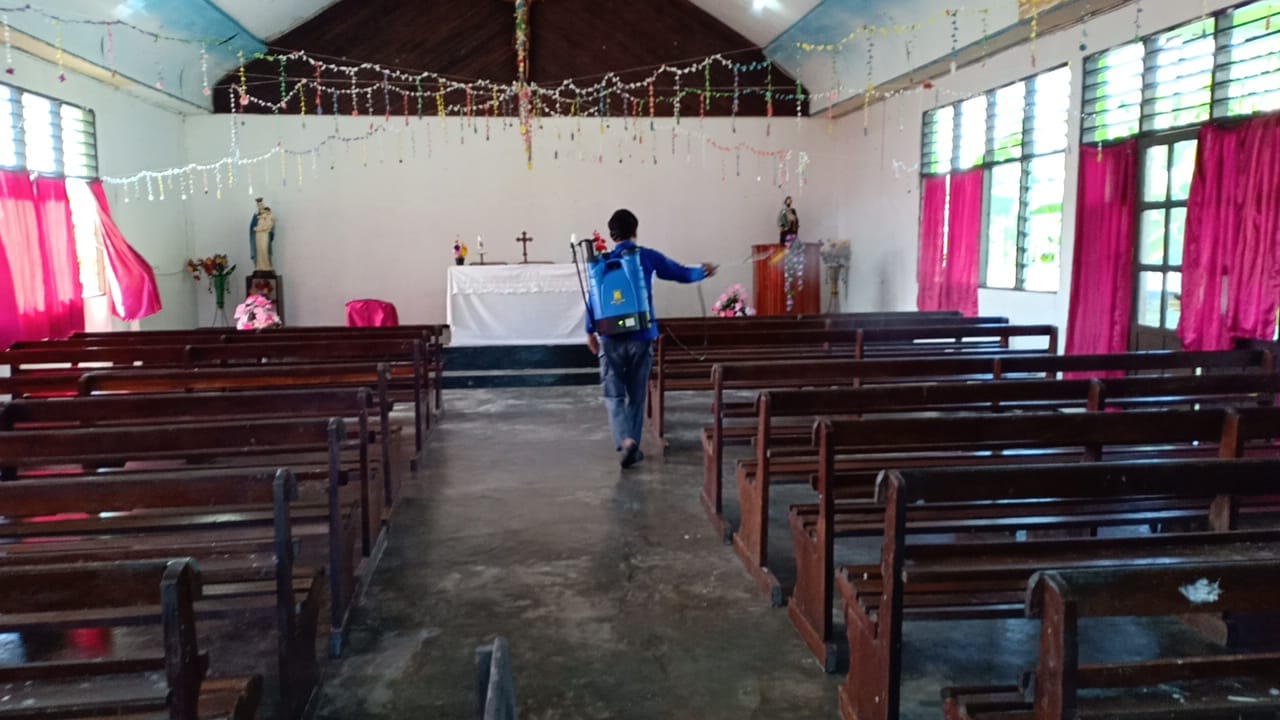 Penyemprotan cairan sterilisasi (disinfektan) di berbagai fasilitas umum masyarakat