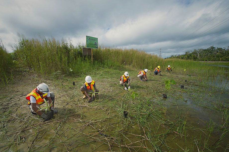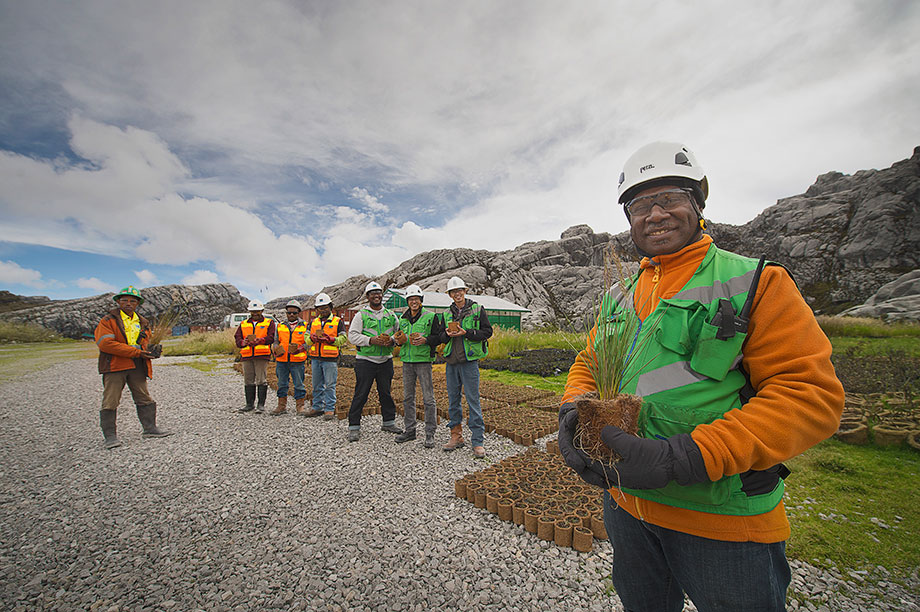 Ekosistem dataran tinggi terbentuk oleh kondisi-kondisi lingkungan yang ekstrem, yang mencakup suhu malam hari yang sangat rendah, radiasi matahari tinggi selama siang hari dengan periode fotosintesis yang pendek, kabut tebal, curah hujan tinggi, dan tanah yang miskin hara. Tanaman yang hidup di sini sangat istimewa; melewati evolusi untuk bertahan dalam kondisi hidup yang keras. Banyak di antara spesies ini, termasuk rumput lokal dan beberapa spesies rhododendron dan lumut, telah diketahui sesuai untuk dipakai dalam reklamasi terasering batuan penutup. Sepanjang tahun 2018, kurang lebih 33,76 hektar lahan terganggu yang sudah tersedia sebelum tahun 2018 di dekat areal pertambangan di dataran tinggi telah dilakukan revegetasi sebagai bagian dari program reklamasi jangka panjang. Sampai akhir tahun 2018, total lahan terganggu yang telah direklamasi seluas 378 hektar. Kami memantau kinerja beragam teknik penanaman dan memodifikasi program-program untuk meningkatkan keberhasilan reklamasi jangka panjang ini.