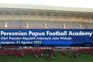 Aksi tendangan bola dari Presiden RI Joko Widodo menandai diresmikannya Papua Football Academy (PFA), yang berlangsung di Stadion Lukas Enembe, Kabupaten Jayapura (31/08/2022). Presiden Jokowi mengapresiasi peran Freeport Indonesia mendukung pembangunan masyarakat Papua dalam bidang olahraga dan berharap melalui PFA akan muncul talenta sepak bola Papua berjiwa sportif, kompetitif, percaya diri dan berprestasi. PFA merupakan program pengembangan talenta unggul sepak bola Papua yang dibarengi dengan pembekalan ilmu pendidikan bagi talenta muda Papua. PFA menjadi wujud nyata komitmen investasi sosial kami dalam pembangunan berkelanjutan di Kabupaten Mimika.